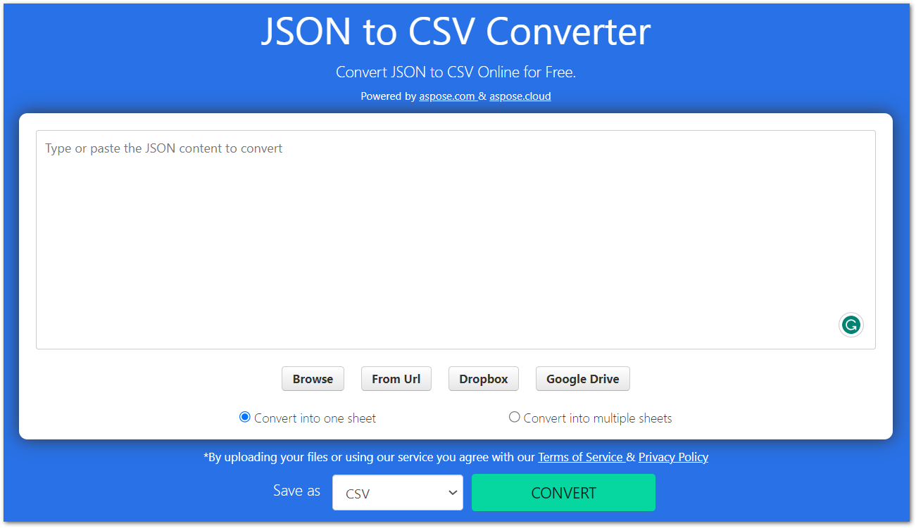 Hvis du foretrækker en hurtig løsning uden at skrive kode, se vores Gratis online JSON til CSV konverter. Dette værktøj giver dig mulighed for simpelthen at uploade din JSON-fil og det håndterer konverteringen for dig i en snap.