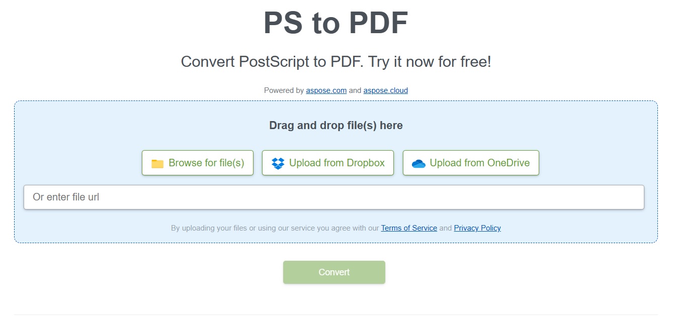 - Upload Your File: Drag & drop din PS-fil(er) eller klik på Browse for filer Du kan også give en fil URL’er eller upload fra Dropbox og OneDrive.